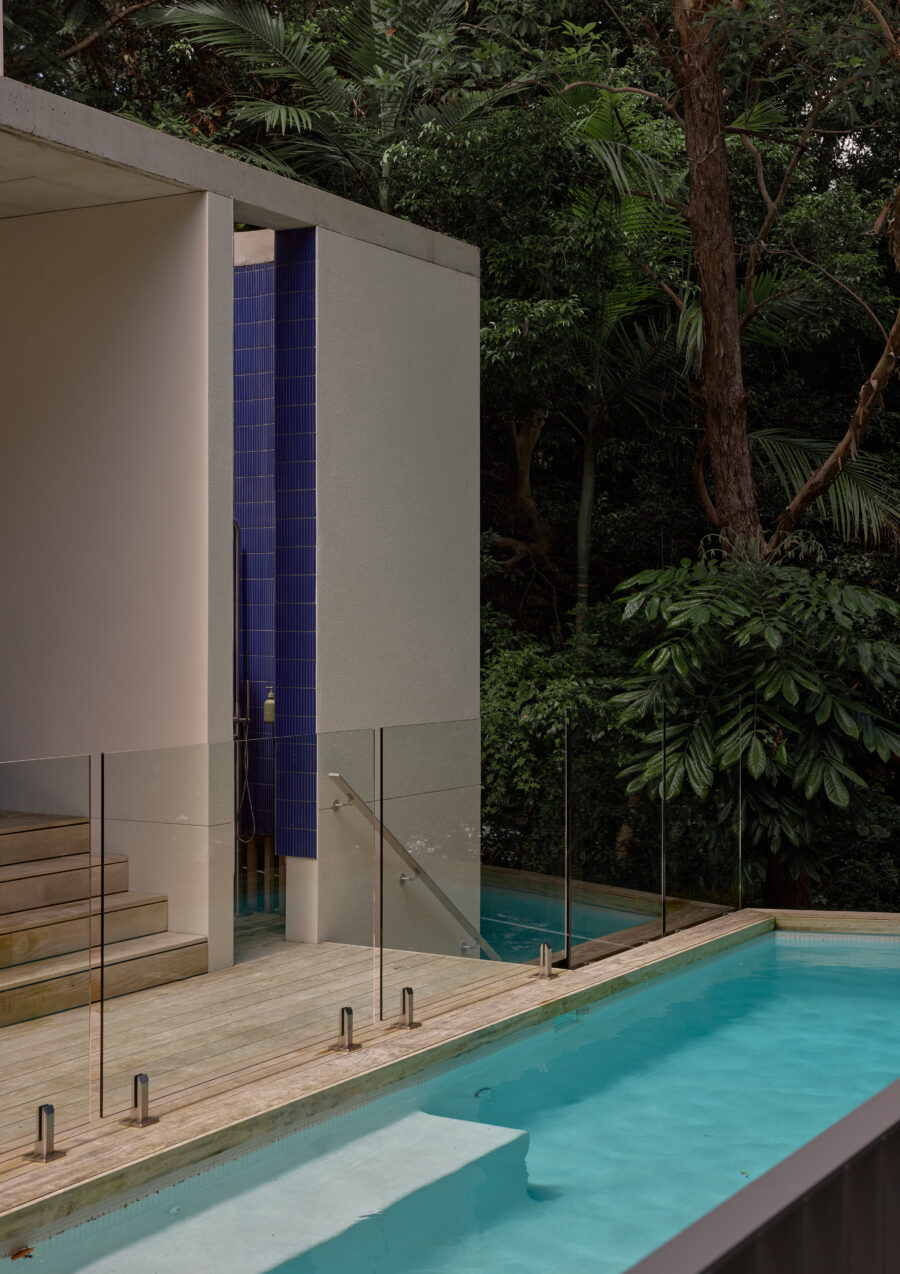 The delight of this project is in the dialogue between the lush vegetation surrounding the building & the paired back minimalism of the interior.