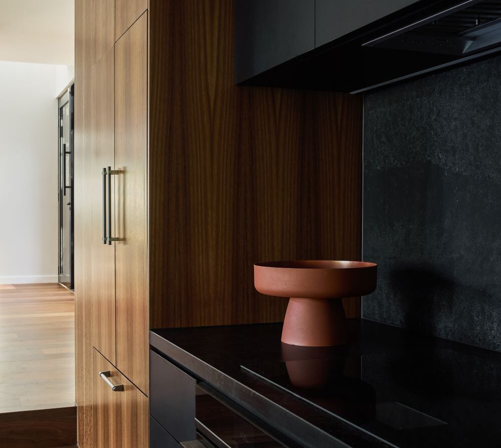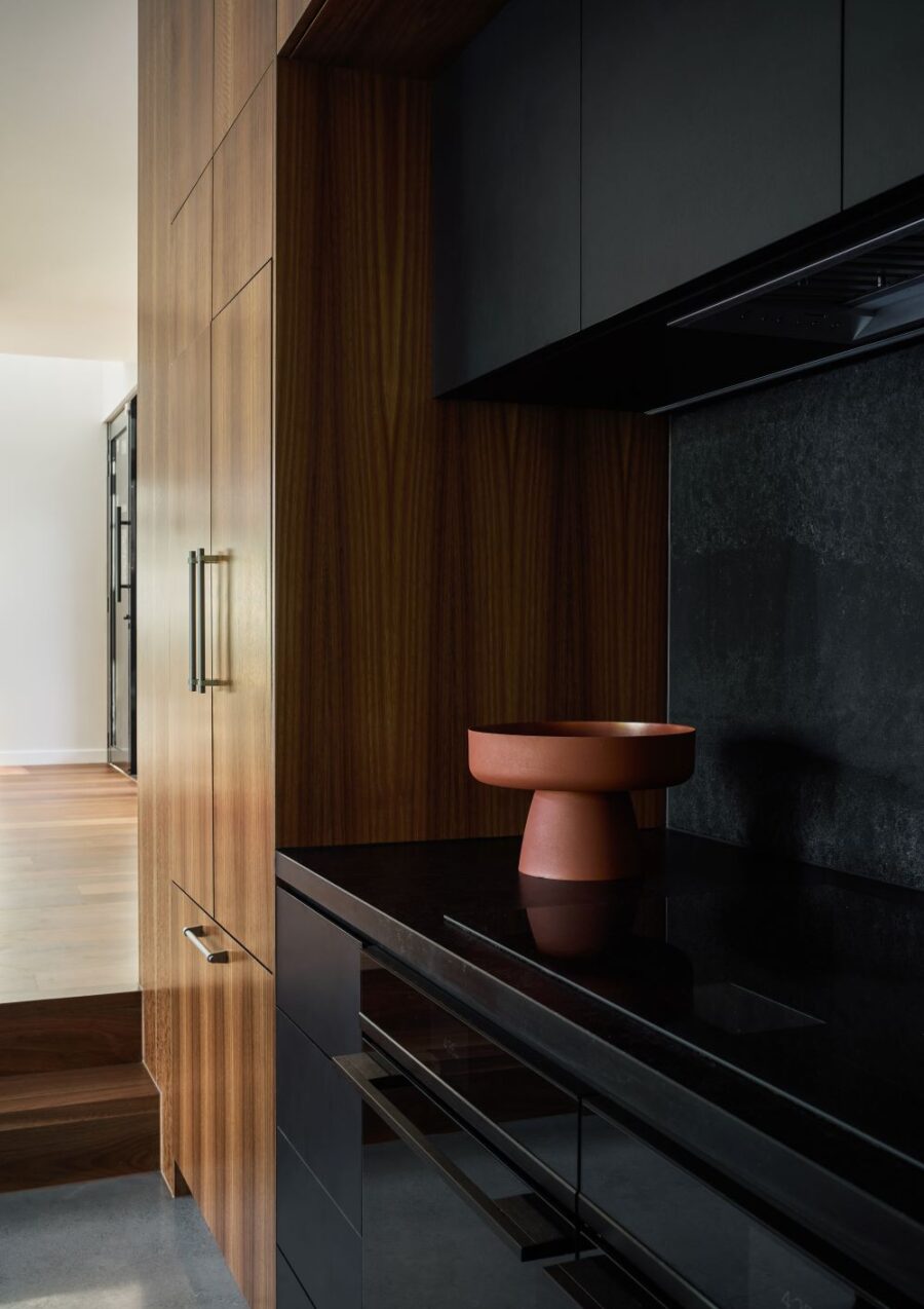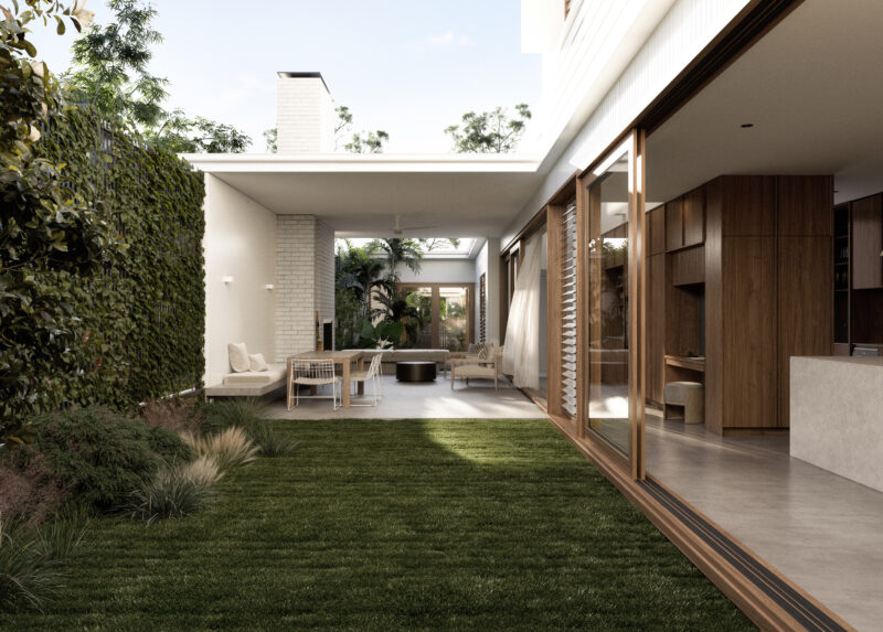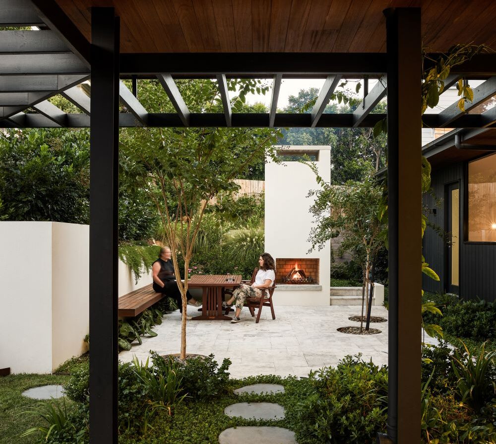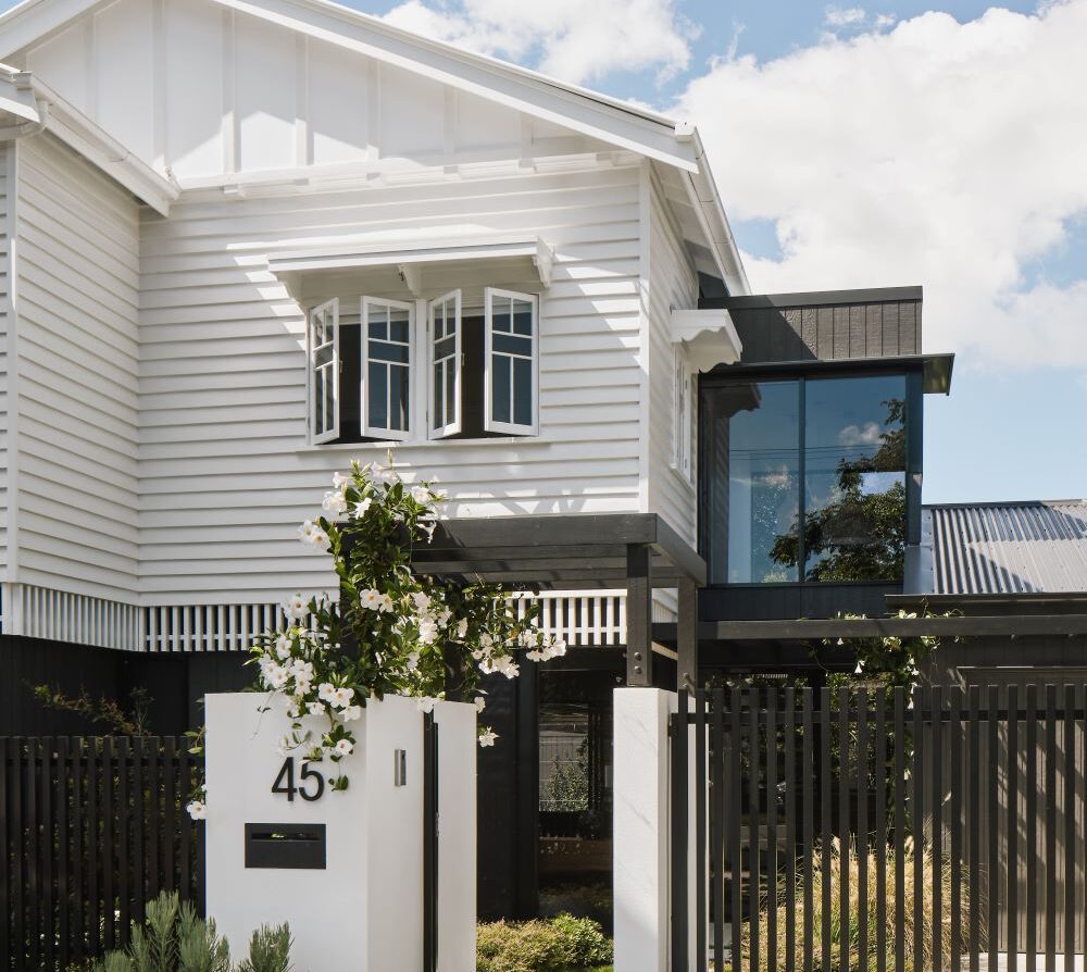 The contemporary extension is dark to recede, and detailed simply to be subservient to the existing cottage. Internally, the interior design pays homage to the dwelling’s heritage, incorporating traditional Queensland heritage colours in contemporary playful, textural materials to evoke a sense of warmth and character.