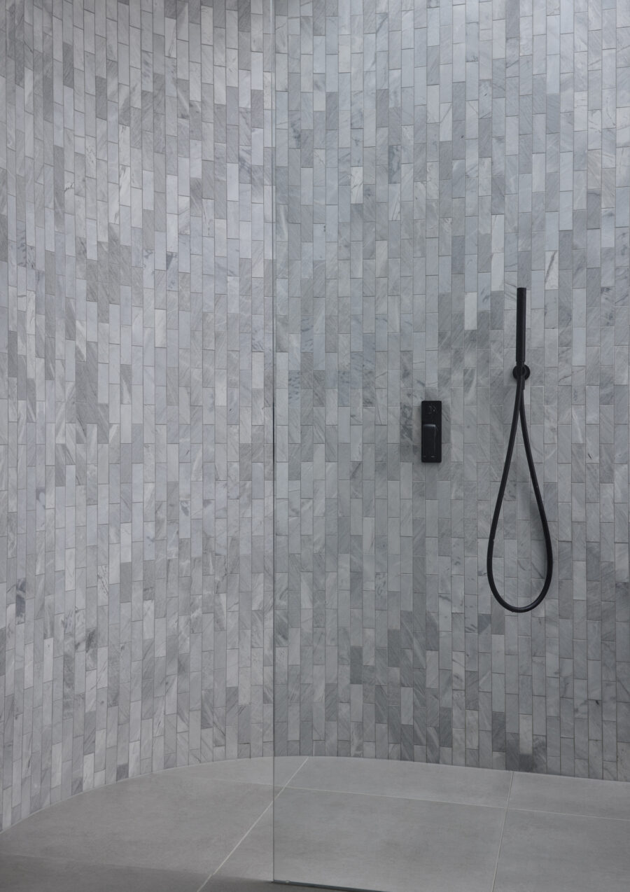 A material play between form, fabric & double height volumes create an elegant sculptural home.
